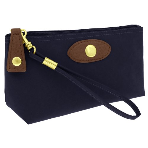 Product Description : Capelli New York Nylon Wristlet With Faux Leather patch and Zipper Puller Navy
