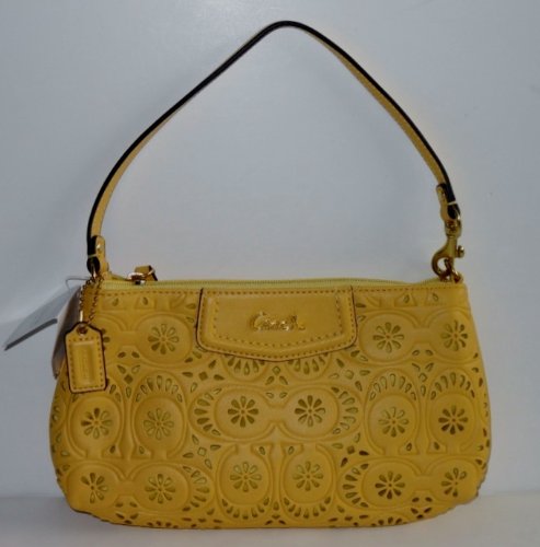 Click to get Save Price COACH Ashley Lace Large Leather Wristlet Converts to Top Handle in Yellow 48807