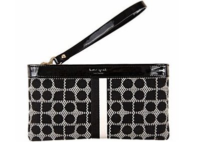 The Kate Spade Classic Noel Zippered Chrissy in Black is versatile. With a removable strap, it can be used either as a wristlet, clutch, or a wallet. The durable jacquard fabric is trimmed with patent leather which adds that little bit of 'shine' all the way to the end of the strap.