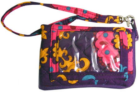 *PATTERN RETIRED DECEMBER 2012! This ID wristlet is a perfect, compact way to keep all of your ID's together. Features an exterior ID window, two interior compartments for a phone, camera, or any other necessity. Has a zipper closure and a removable wrist strap.
