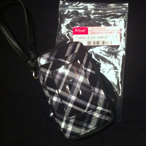 Thirty One Timeless Wristlet in Black Pick Me Plaid