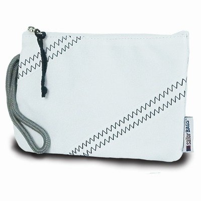 316-WB Color: White with Blue Trim Features: -Hold cash, keys, cards and other small items.-Put inside a larger bag to make it easy to grab the essentials and go.-Top zipper, full waterproof lining and soft, comfortable wrist loop.-Lifetime. Dimensions: -Dimensions: 4.5" H x 8" W.